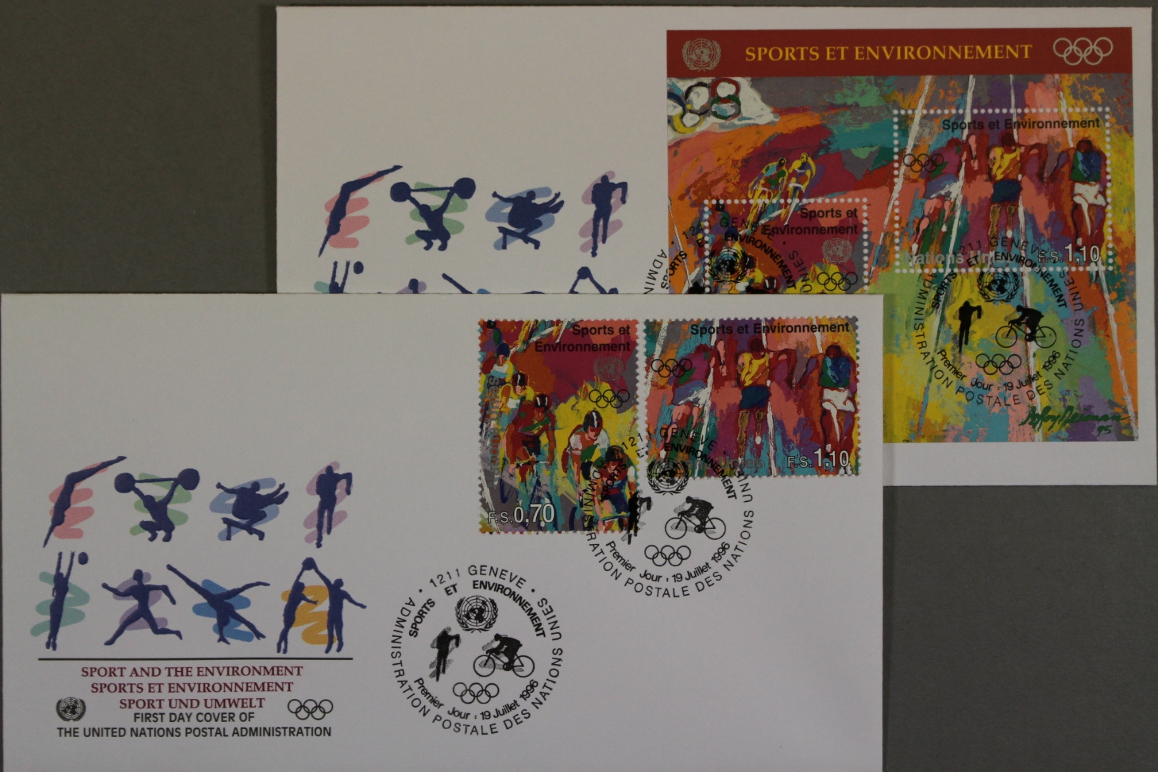 100 Jahre Olympische Sommerspiele, 2 UNPA-Ersttagsbriefe.