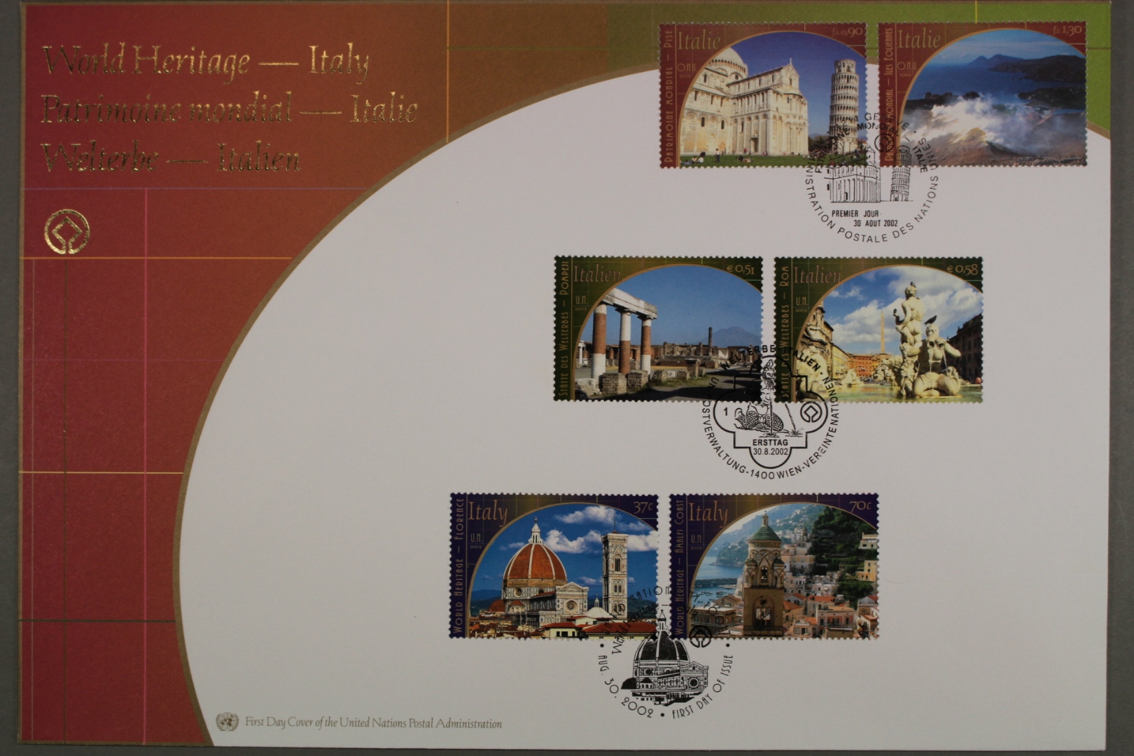 UNESCO Welterbe: Italien, NY 904-905, Genf 448-449, Wien 371-372.