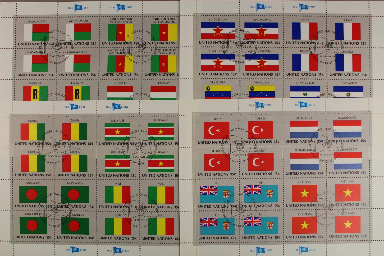 Flaggen der UNO 1980, 4 Kleinbögen, Ersttagssonderstempel.