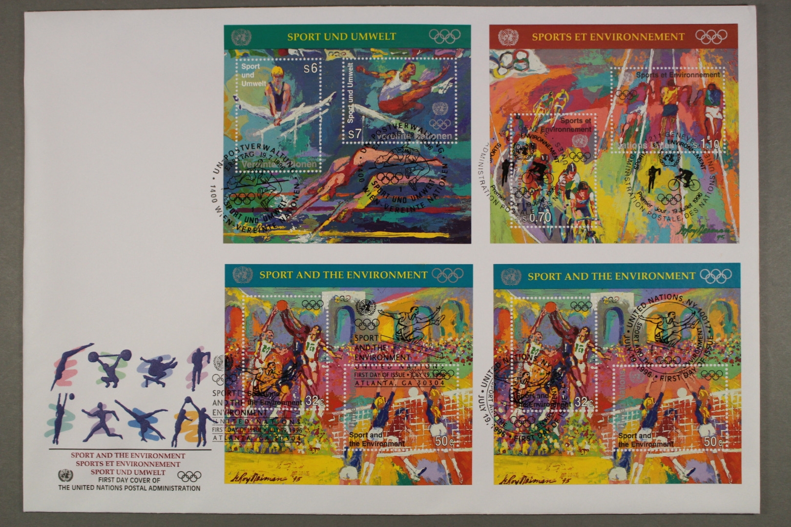 100 Jahre Olympische Spiele der Neuzeit, NY 2 x Block 13, Genf Block 8, Wien Block 7.