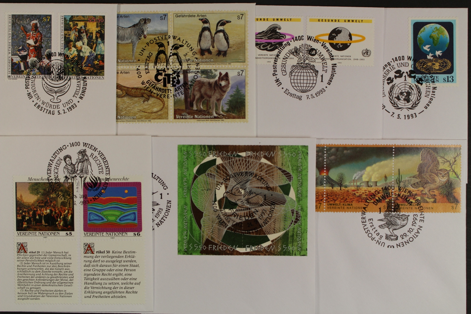 7 Ersttagsbriefe UNPA.