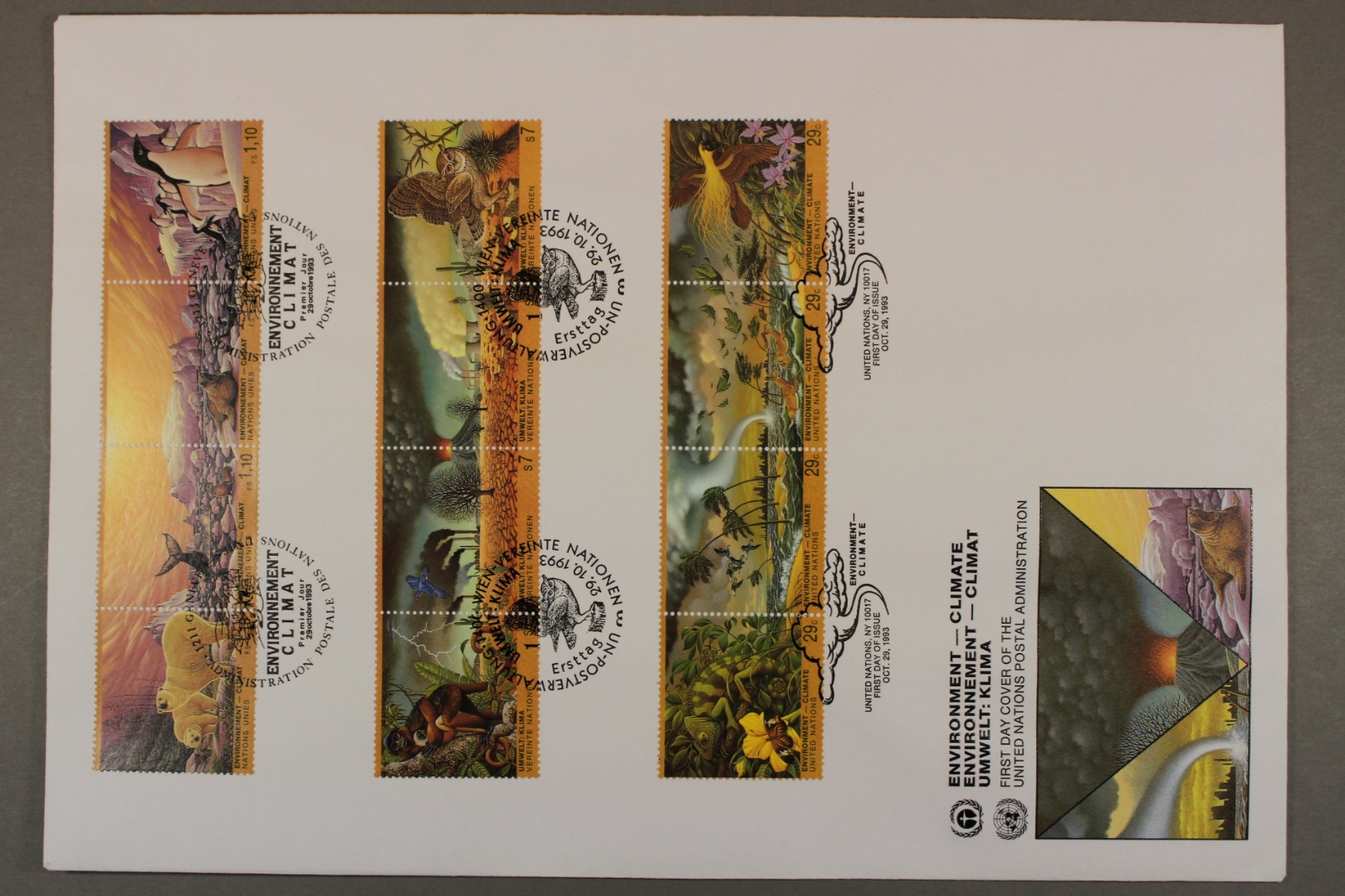 Klimaveränderung durch Umweltverschmutzung, NY 657-660, Genf 239-242, Wien 156-159.