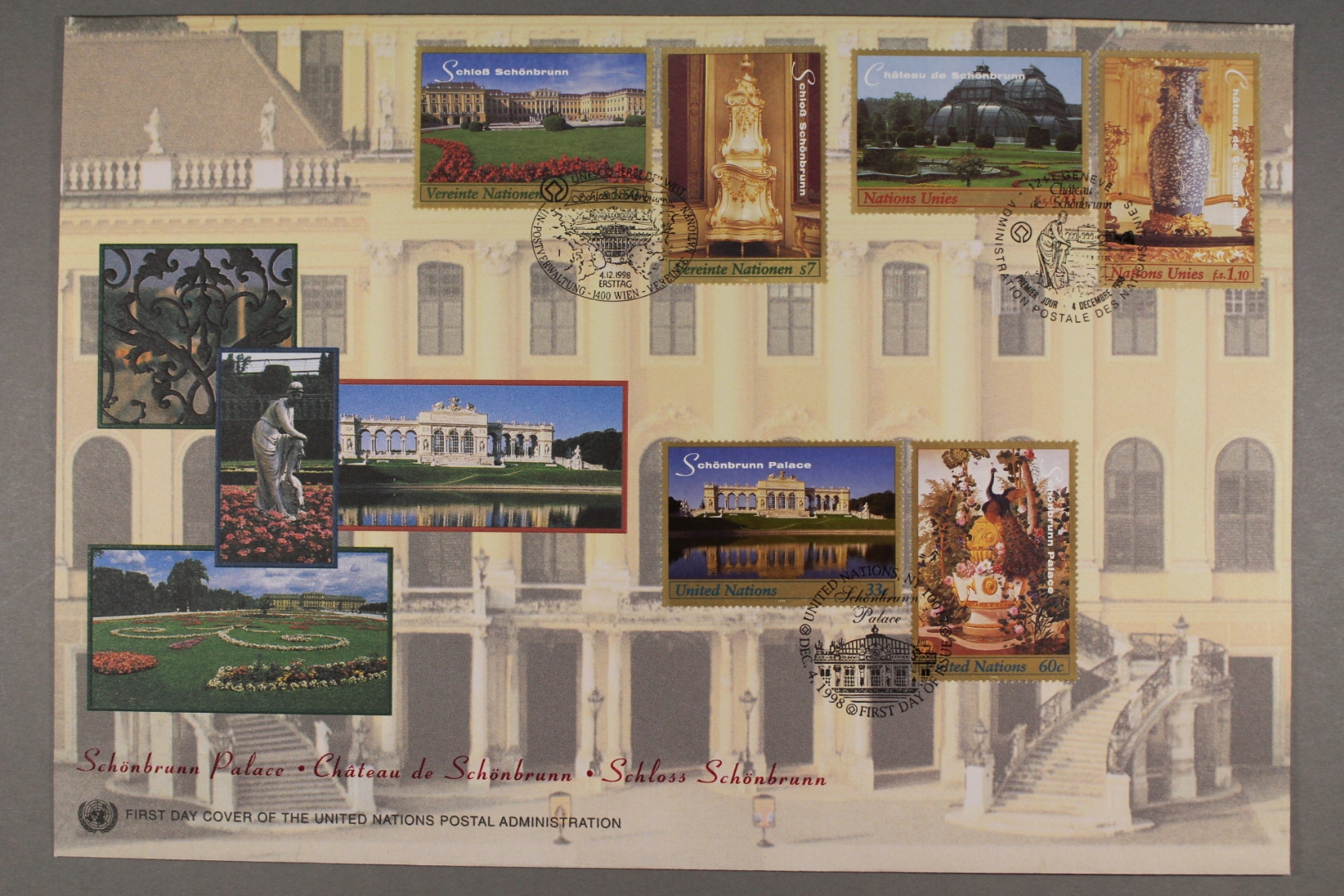 UNESCO: Schönbrunn, NY 789-790, Genf 352-353, Wien 270-271, UNPA-Ersttagsbrief.