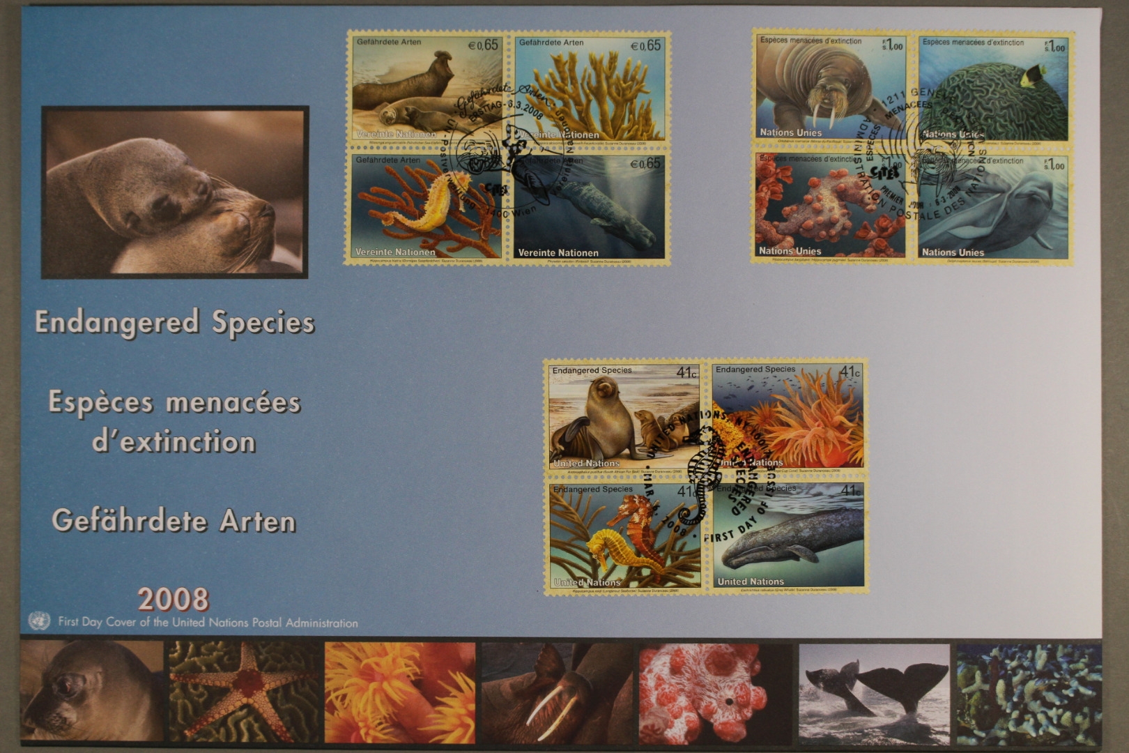 Gefährdete Arten: Meeresarten, NY 1079-1082, Genf 588-591, Wien 526-529.