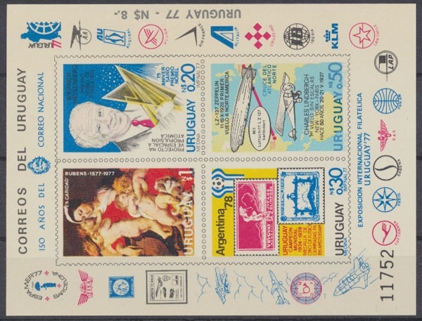 Jahresereignisse/ Fußball WM, Kleinbogen mit aufgedruckter Zähnung zur URUEXPO, Vignette