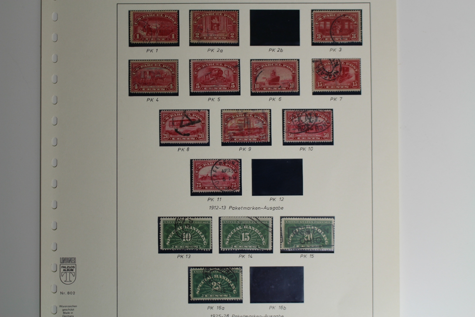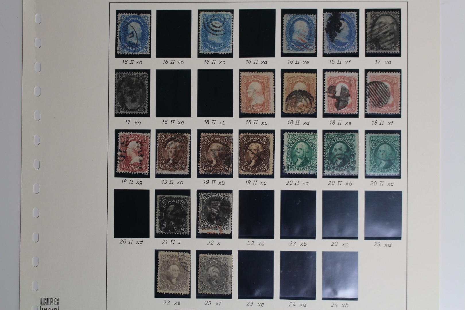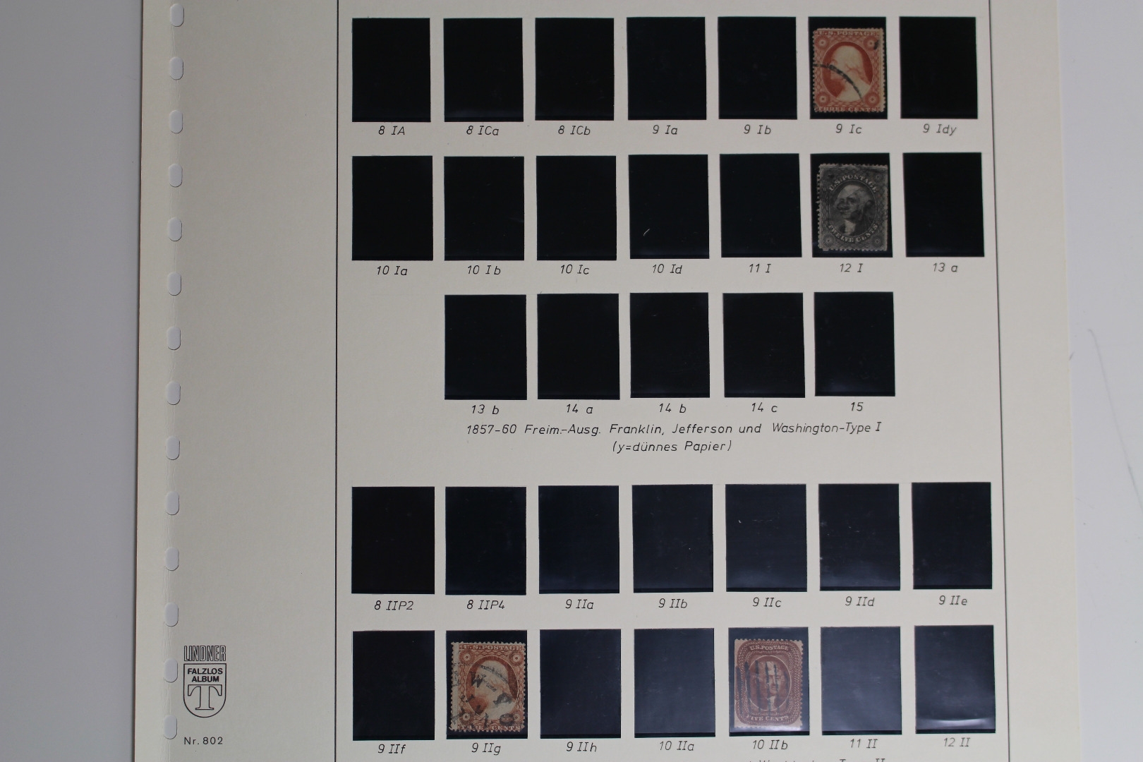 Untergebracht auf selbstgestalteten Lindner Blankoblättern mit schwarzen Klemmtaschen.