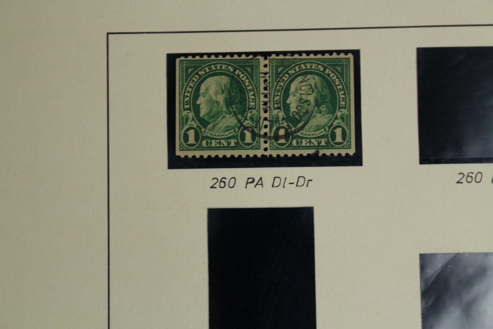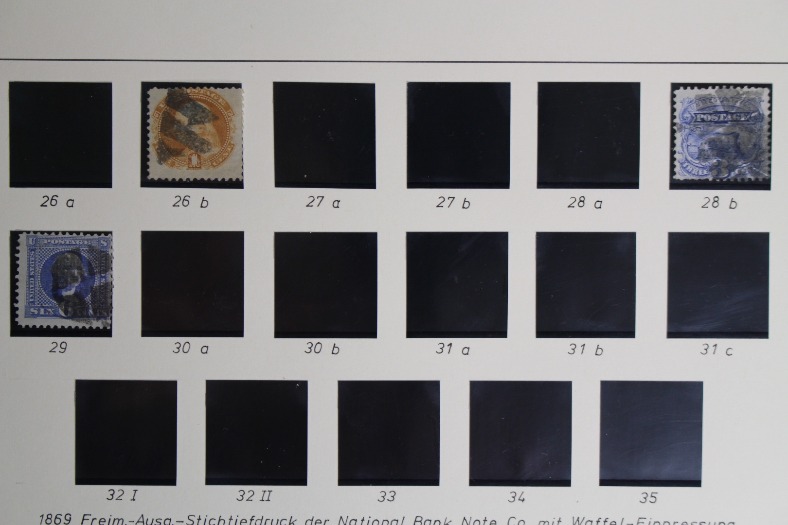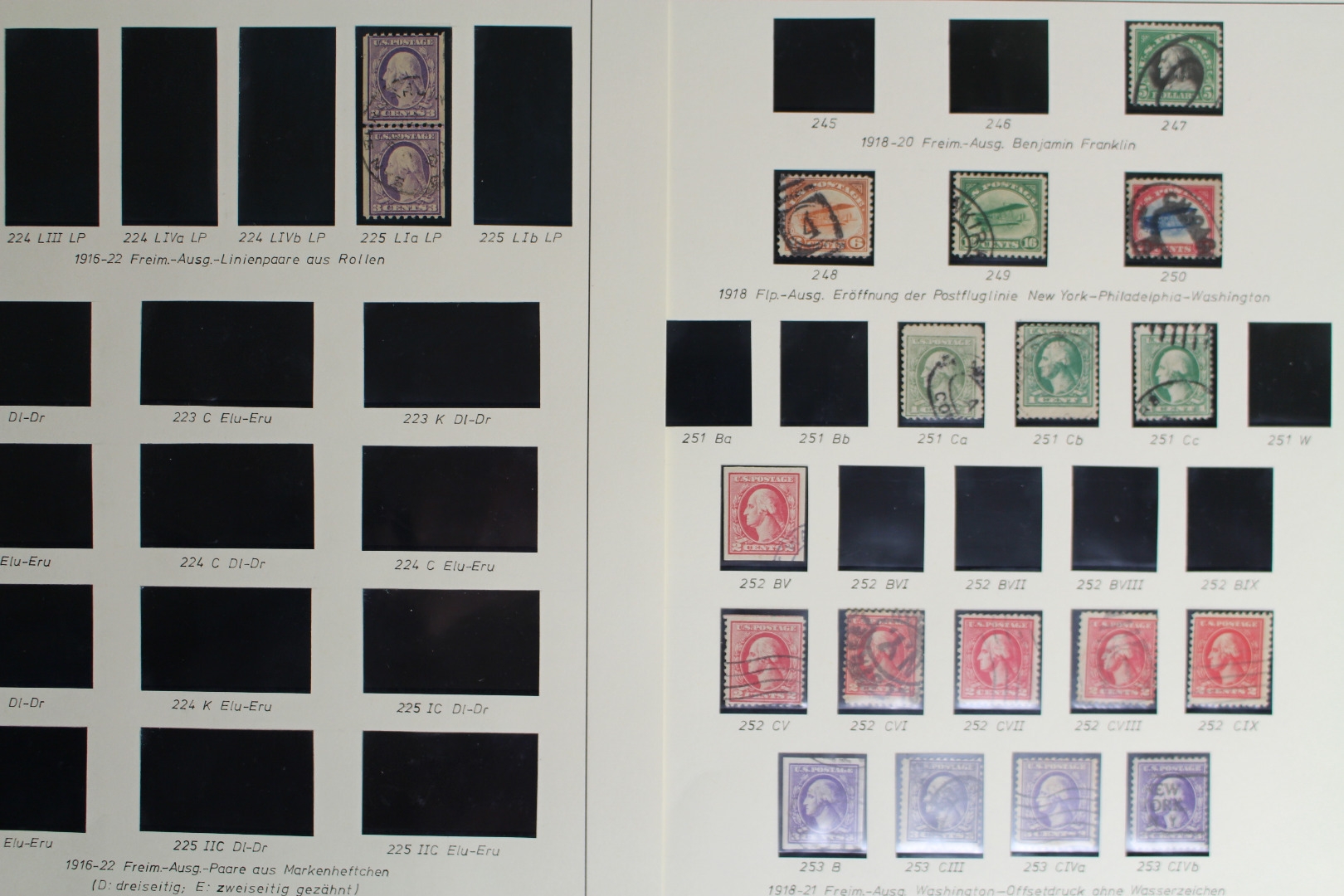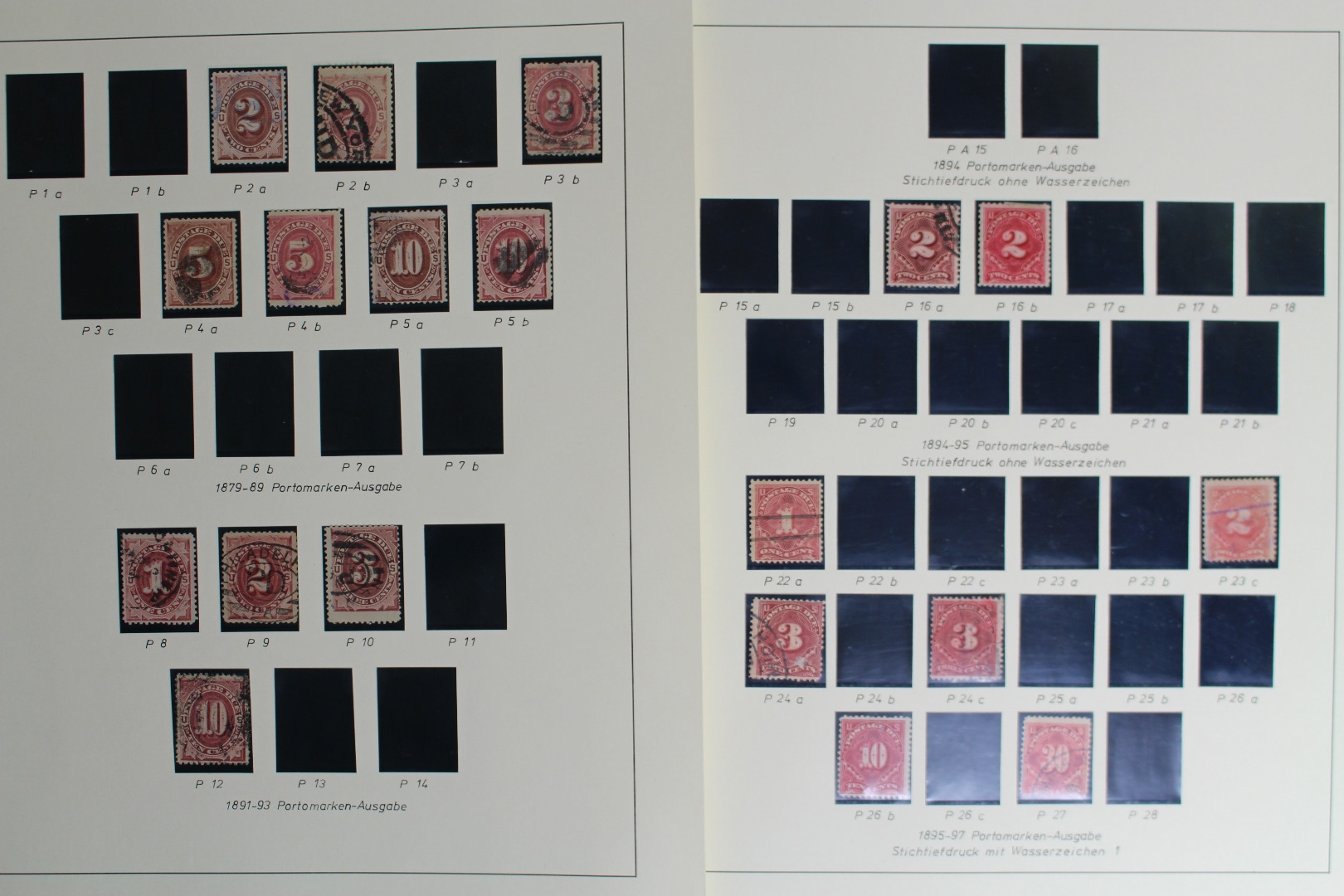 Untergebracht auf selbstgestalteten Lindner Blankoblättern mit schwarzen Klemmtaschen.