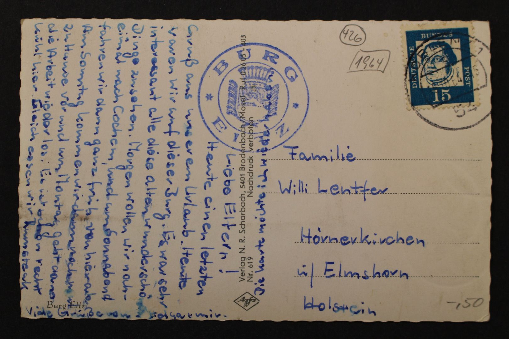 Karte gelaufen, etwas bestoßen, leicht fleckig