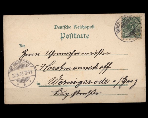 Farbige 3 Bilderkarte, gelaufen 1899, leicht fleckig, sonst sehr gute Erhaltung PLZ 65000